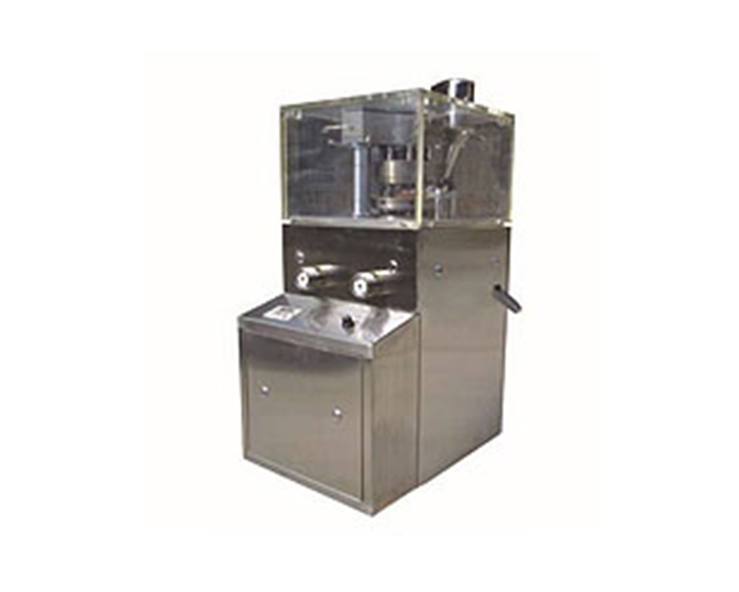 本机用以将各种颗粒状原料压制成圆片状,还能压制成各种几何形状的异形片。适合于小批量生产。压片时转盘速度、物料的充填深度,压片厚度均可调节。机上的机械缓冲装置可避免过载而引起的机件损坏。机体一侧配有吸粉箱,通过吸咀可吸取机器运转时产生的粉尘,避免粘结堵塞,并可回收原料重新使用。
